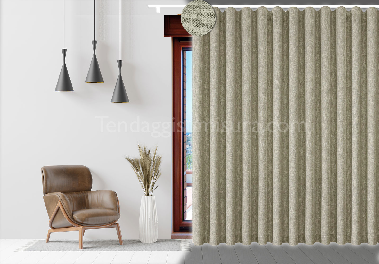 Tenda a onda wave oscurante nei colori della terra. Scegli questo tendaggio se la tua è necessità di avere buio anche quando c’è la luce solare. Il sistema ad onde non è un sistema che impedisce l’ingresso della luce ai lati, ma scegliendo il tessuto black-out sarete certi che, dal tessuto, non entrerà luce. Riuscirete quindi a ridurre molto l’ingresso della luce all’interno della stanza.